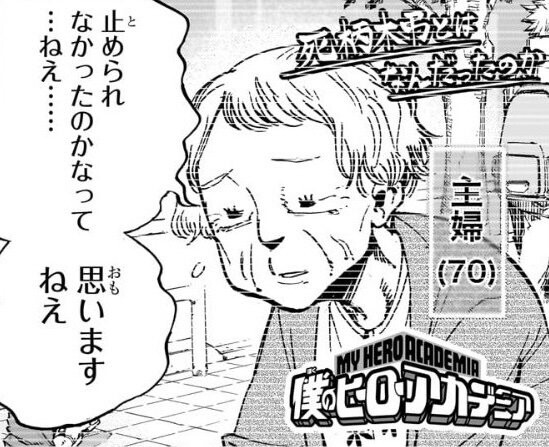 | … | 1225/12/13(土)19:33:07No.1382110408そうだねx34>この人死柄木があのときのガキだとは気づいてんの? |