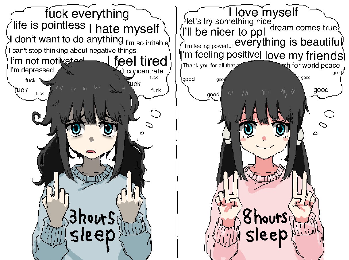 | … | 225/12/13(土)20:50:46No.1382143959そうだねx22>俺が普段鬱屈としてるのは睡眠時間が短いからだったのか |