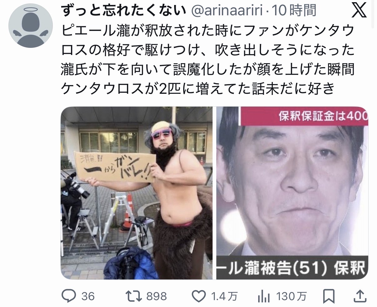 | … | 4725/12/13(土)23:19:40No.1382206200そうだねx1>けど逮捕されたときはびっくりしたよね |