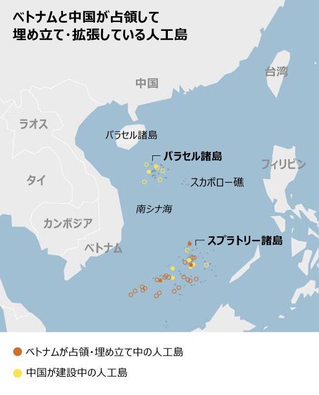 >あの後ベトナムも人工島を中国の島の周りに生やすことで反撃してるな