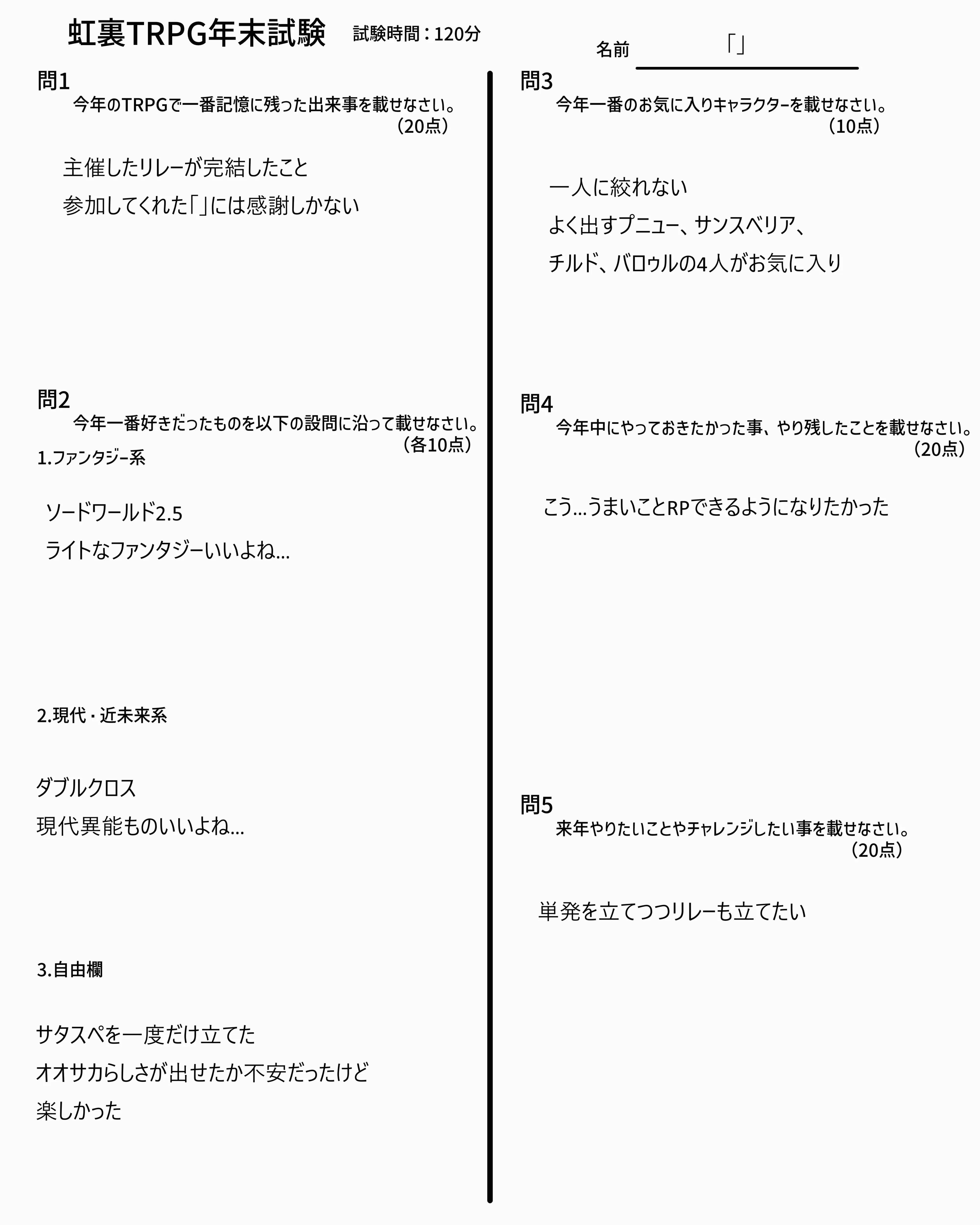 | … | 625/12/14(日)19:31:27No.1382494429そうだねx4そんな期末テストの用紙はこれ! |