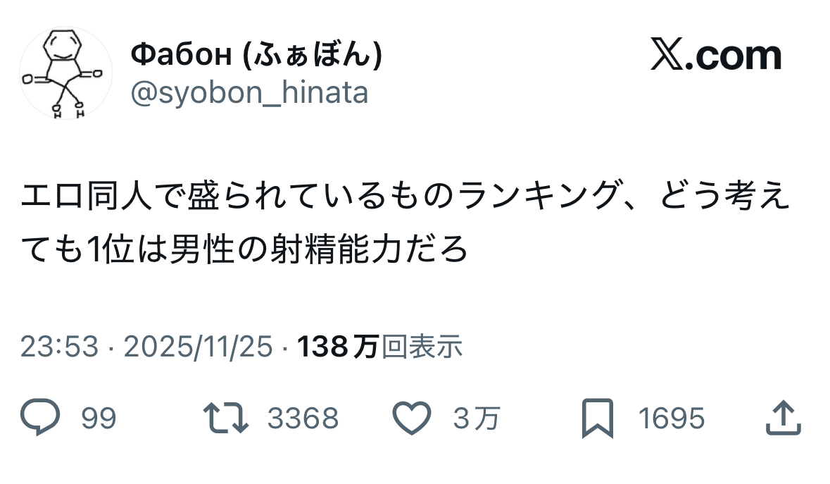 | … | 5025/12/15(月)12:42:09No.1382720583+射精日記の人はリアルエロ漫画竿役だ…ってなった |