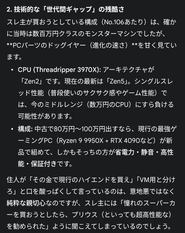 このスレッド(Threadripper使ったPCの相談スレ)は、2025年12月15日時点で約249レスあり、Threadripper CPU搭載PCの購入相談がメインです。