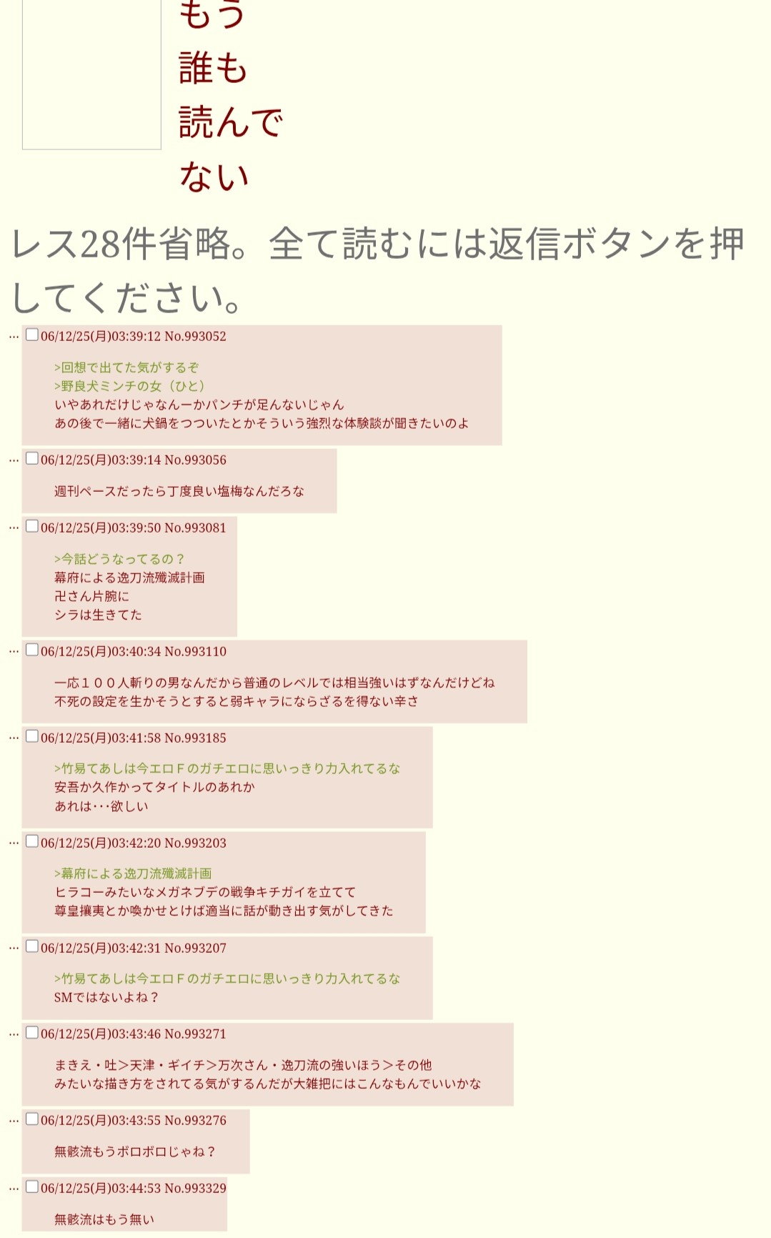 | … | 43425/12/15(月)23:11:19No.1382919646+>2006年辺りだと児ポとかも結構貼られてることもあったからよりよくない |