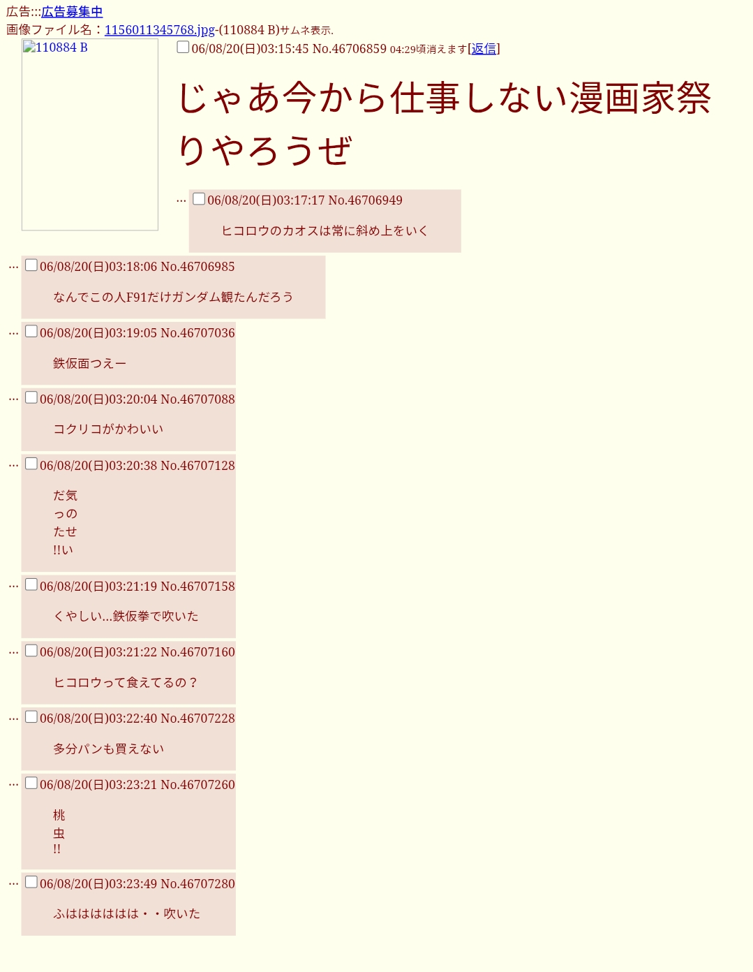 | … | 46325/12/15(月)23:13:28No.1382920528+>>2006年前後ってロリ画像とか貼られたり今以上に無法地帯だった頃じゃねえの |