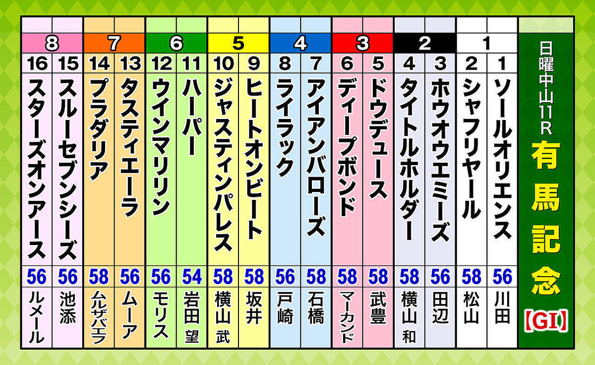 | … | 40325/12/16(火)10:34:21No.1383014516そうだねx2>>ルメールしれっと内枠に移動してて笑う |