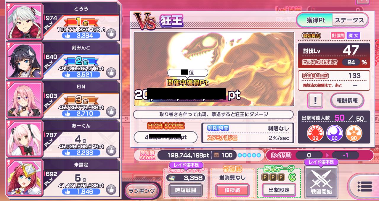 | … | 11725/12/17(水)09:49:11No.1383311764+今は全体攻撃キャラはレイドで露払い役でしかないし殲滅戦でも倍率が0じゃなければなんでもいい状態なので |