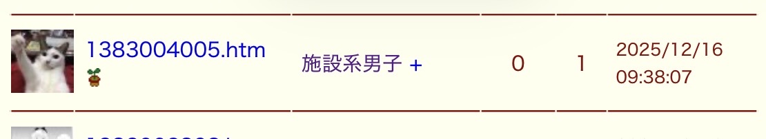 お昼休みの施設系男子なんぬこのスレは古いので、もうすぐ消えます。