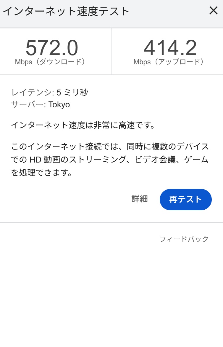 マンションの固定回線(1Gbps)から無線LANルータ経由してタブレットPCで測ってます
