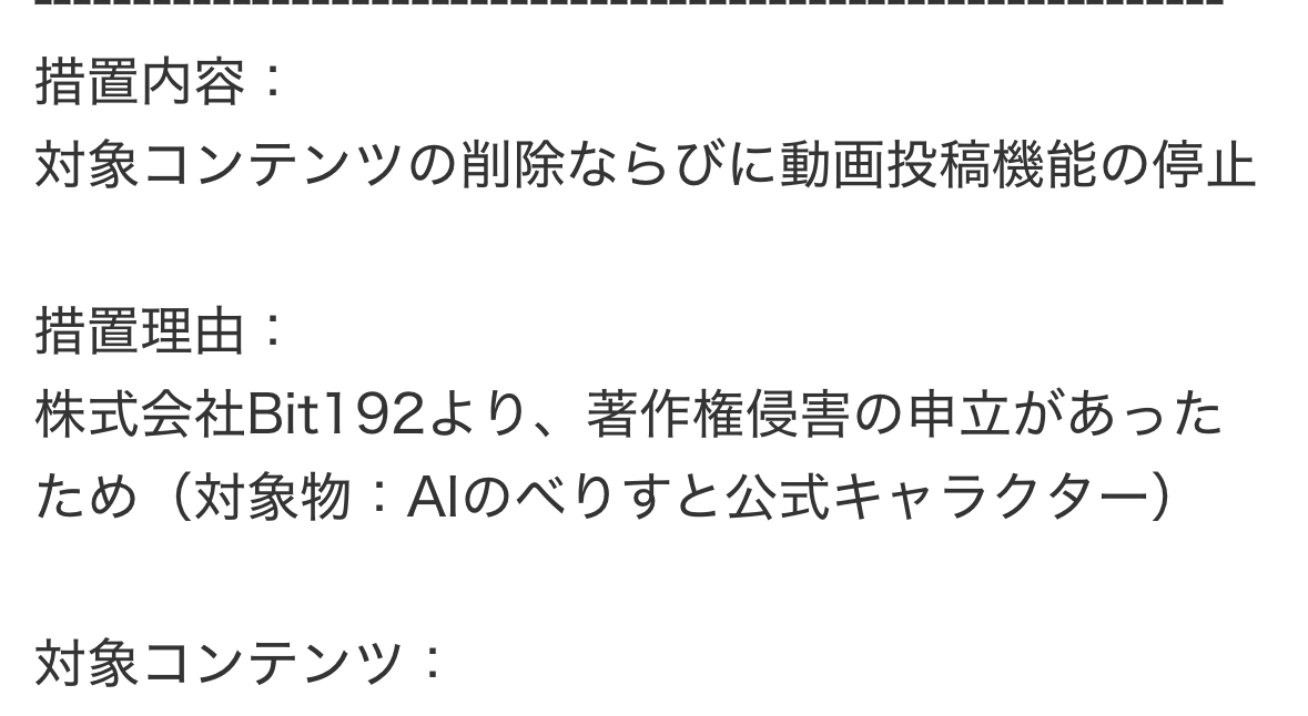 | … | 8025/12/17(水)21:23:58No.1383499348+のべりすとはMOD死んだし今後sora2で似たやつ出さなくなるだけで終わりでいいんじゃない? |