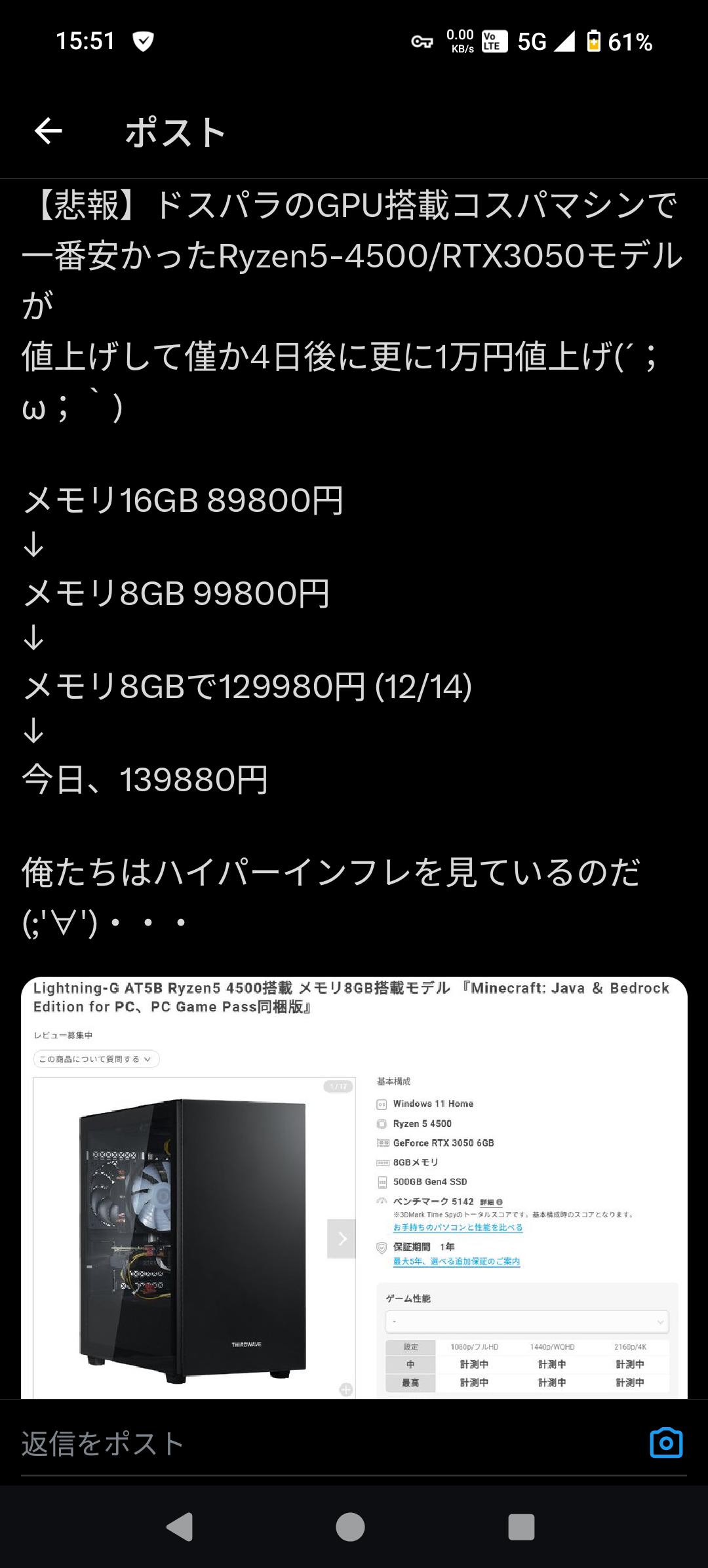 春にグラボ暴騰してBTOの搭載PCも値上がりしてたけど寝てたのか