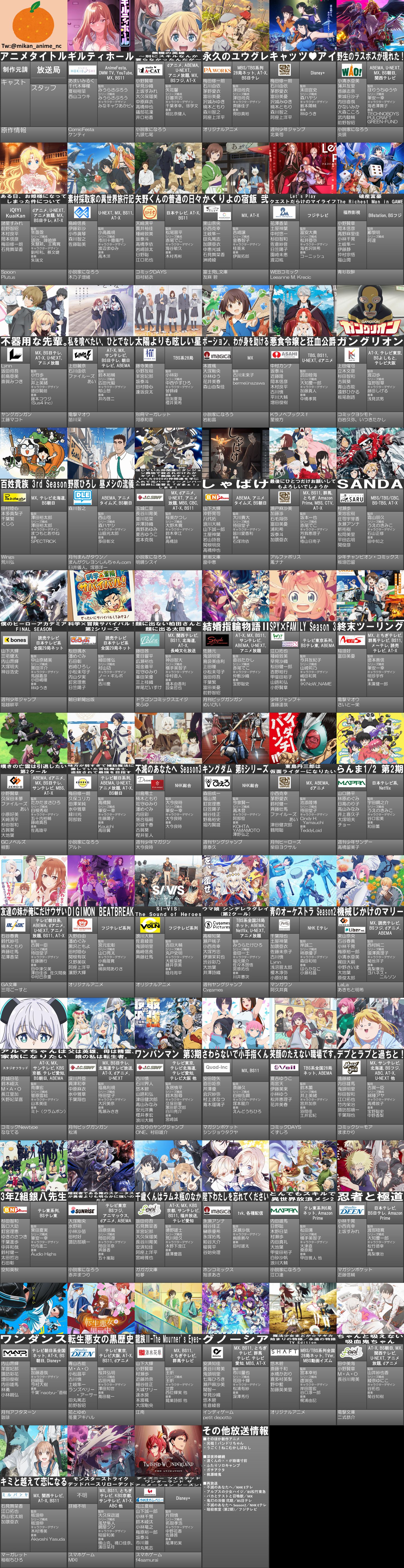 | … | 38425/12/18(木)19:09:38No.1383760061+>全部見てるわけじゃないけど冷静に考えたらこれだけのアニメやってるの狂ってない? |