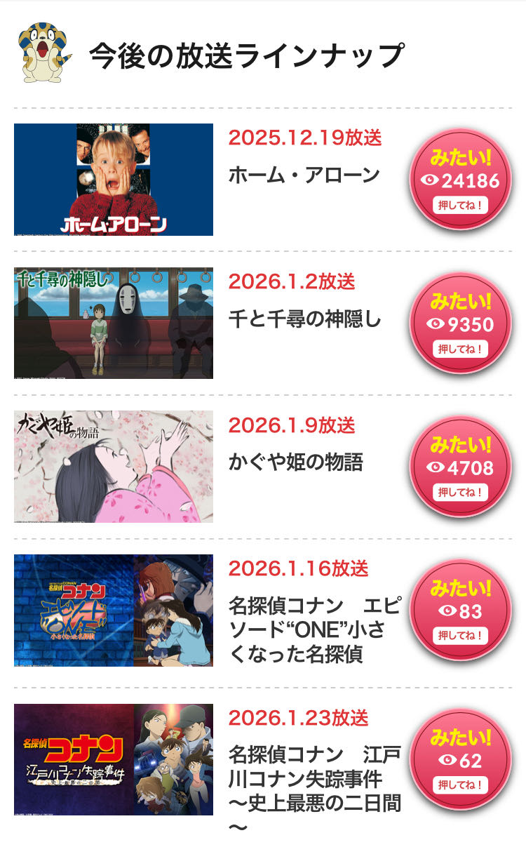 | … | 2525/12/19(金)08:11:57No.1383909520+映画公開時期以外でコナンやるの珍しい気が |