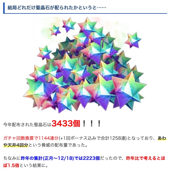 | … | 8625/12/20(土)11:53:24 ID:68KN4EIcNo.1384258665+今貰うと無駄に使いそうだから正月PUのためにクリアおめでとう1000石もくれ |
