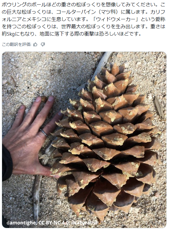 >デカイ松ぼっくり落ちとる!!!って興奮して近寄ったら二個目が落ちてくるんだな