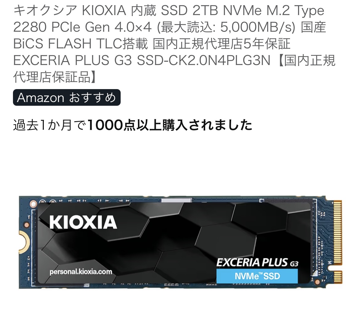 | … | 16825/12/21(日)21:26:00No.1384847961+SSDはキオクシア・サンディスク・サムスンが純正フラッシュメーカーだから安牌 |