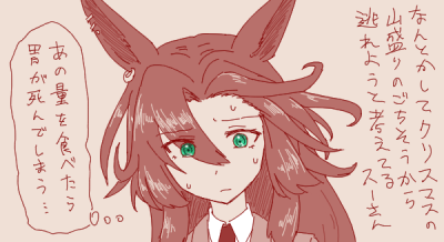 | … | 7325/12/22(月)12:27:52 ID:CMM6yPacNo.1385026441そうだねx6>前ウマ娘だからってお肉盛られて困ってるスーさんも描いてらっしゃいましたね |