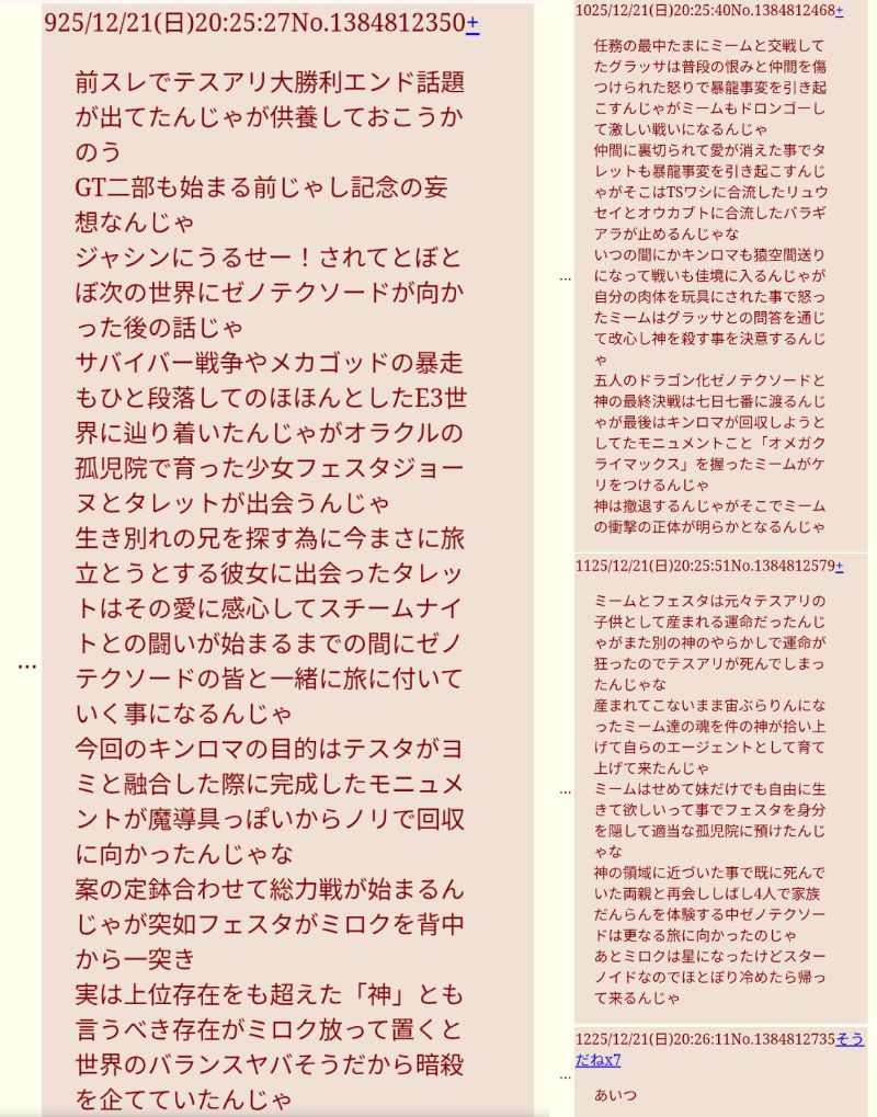 | … | 5225/12/22(月)13:00:10No.1385037272そうだねx2光文明なんてみんなホモよ |