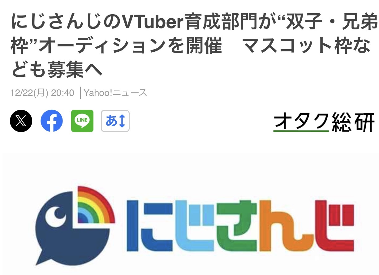 にじさんじがVtuber募集してるけど更にマスコット枠増やすの?って感じなのとこのスレは古いので、もうすぐ消えます。
