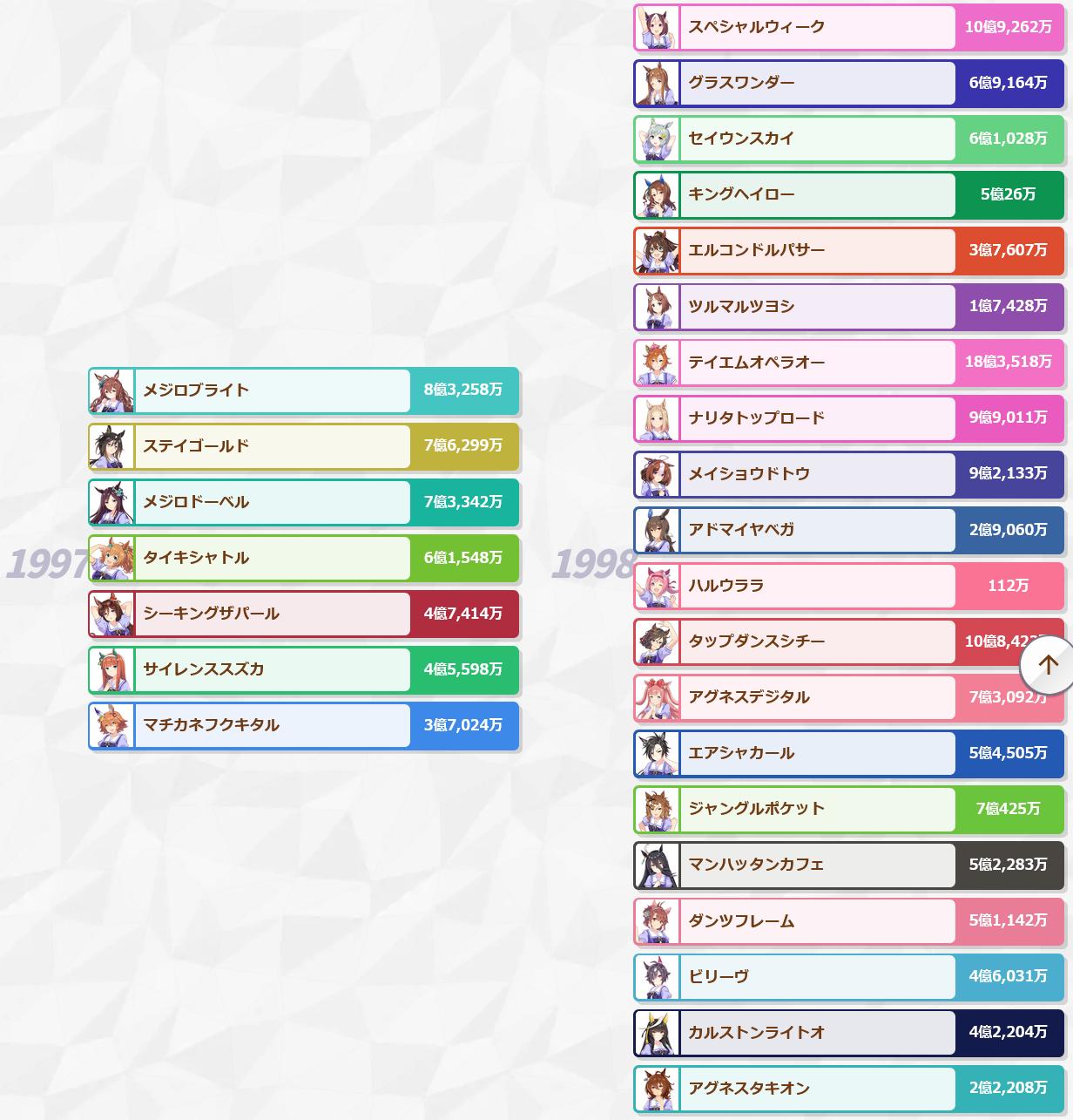 二回目育成したら選択で対戦相手ガラッと変わって これステゴが世代を超えて走ったからトゥインクルシリーズでその対戦相手と再戦する構造になってそれがステゴというウマが世代を超えて活躍したことを表現することになってるんですね 一度の育成じゃわからない演出になっててすごい作りこんでます |
