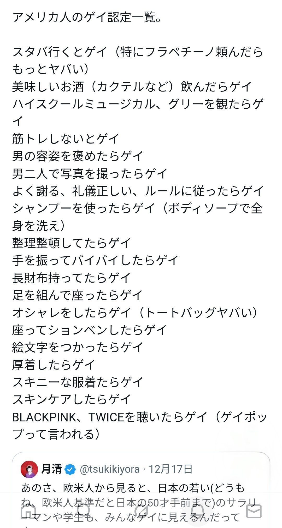 | … | 825/12/23(火)11:50:54No.1385342390そうだねx16筋トレしないとゲイ(筋トレしたらゲイ)みたいな明記されてないダブルバインドありそう |