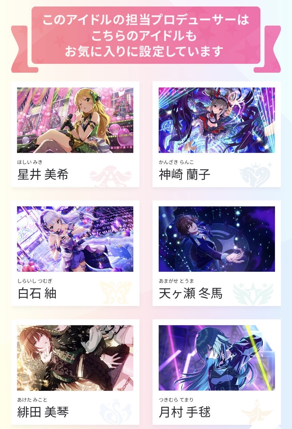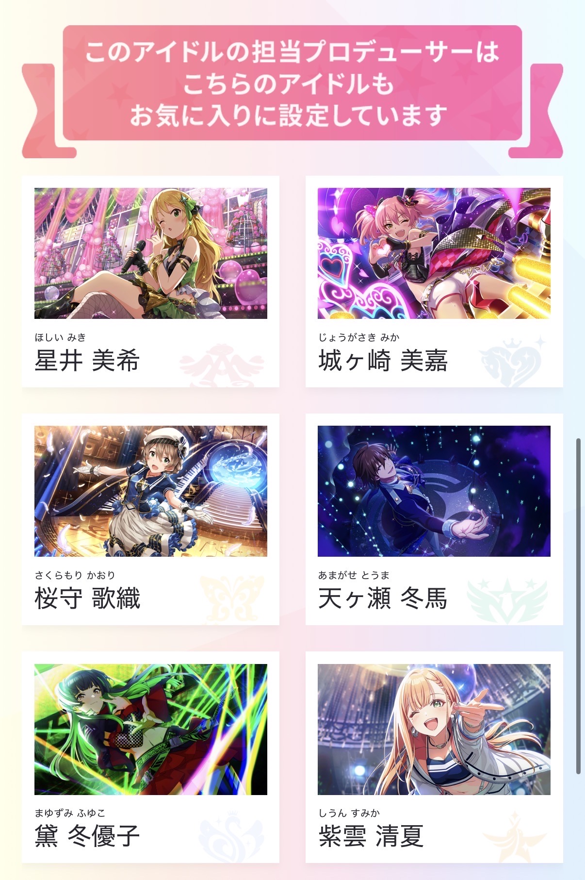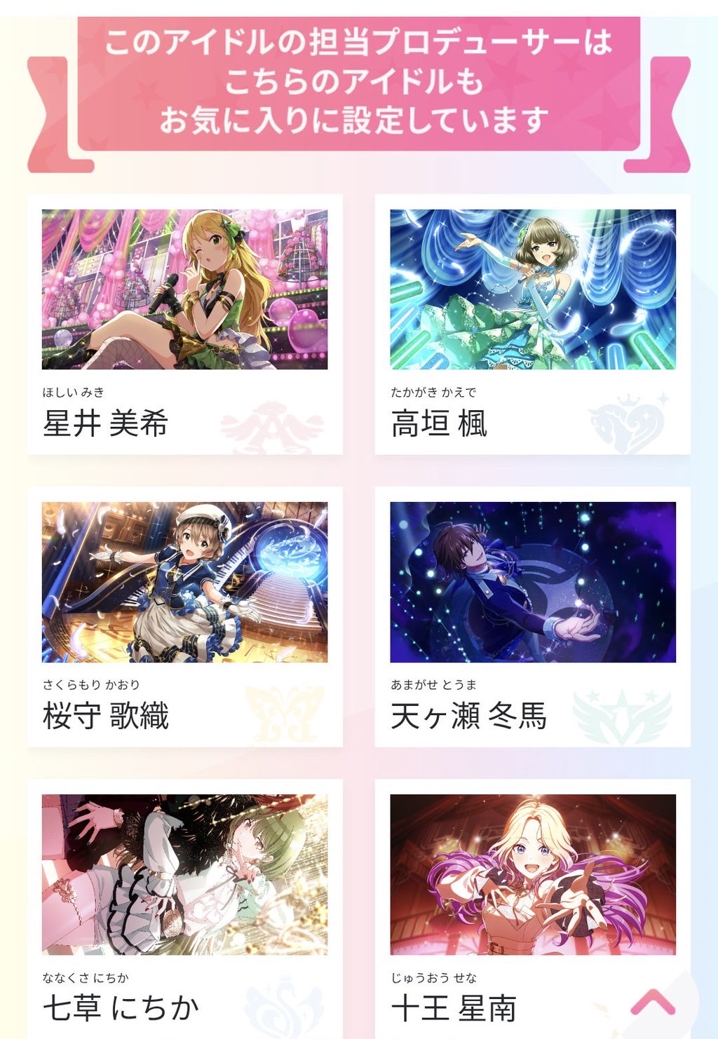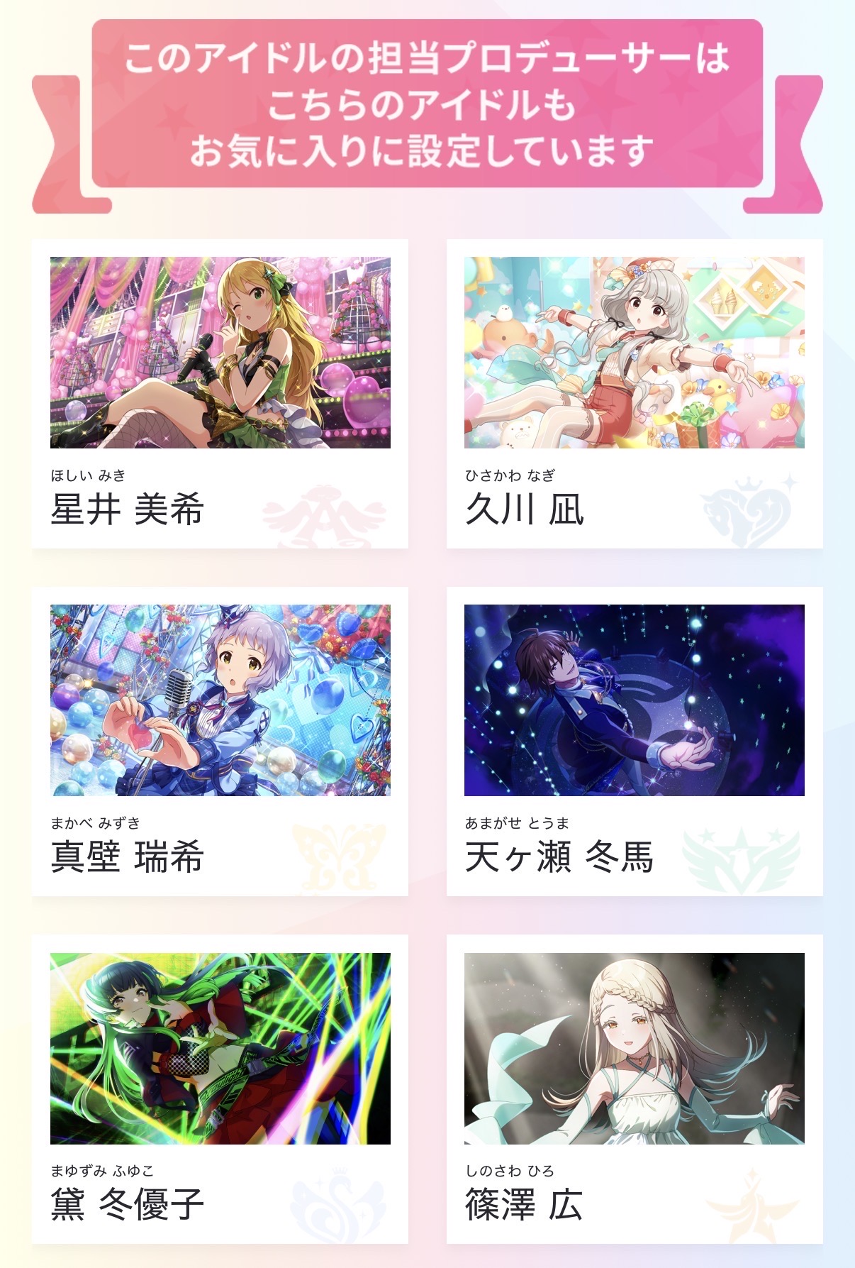 | … | 3625/12/23(火)13:34:50No.1385372427そうだねx11>あさひPと愛依Pは冬優子推しなのに冬優子Pは2人に興味ないの残酷で好き |