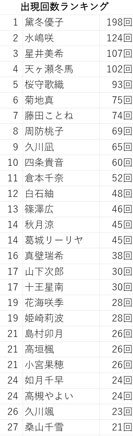 | … | 1625/12/23(火)13:22:09No.1385369694+>>ここまでやったらその他分類のアイドルも集計しろよって思うけどやってないんかな… |