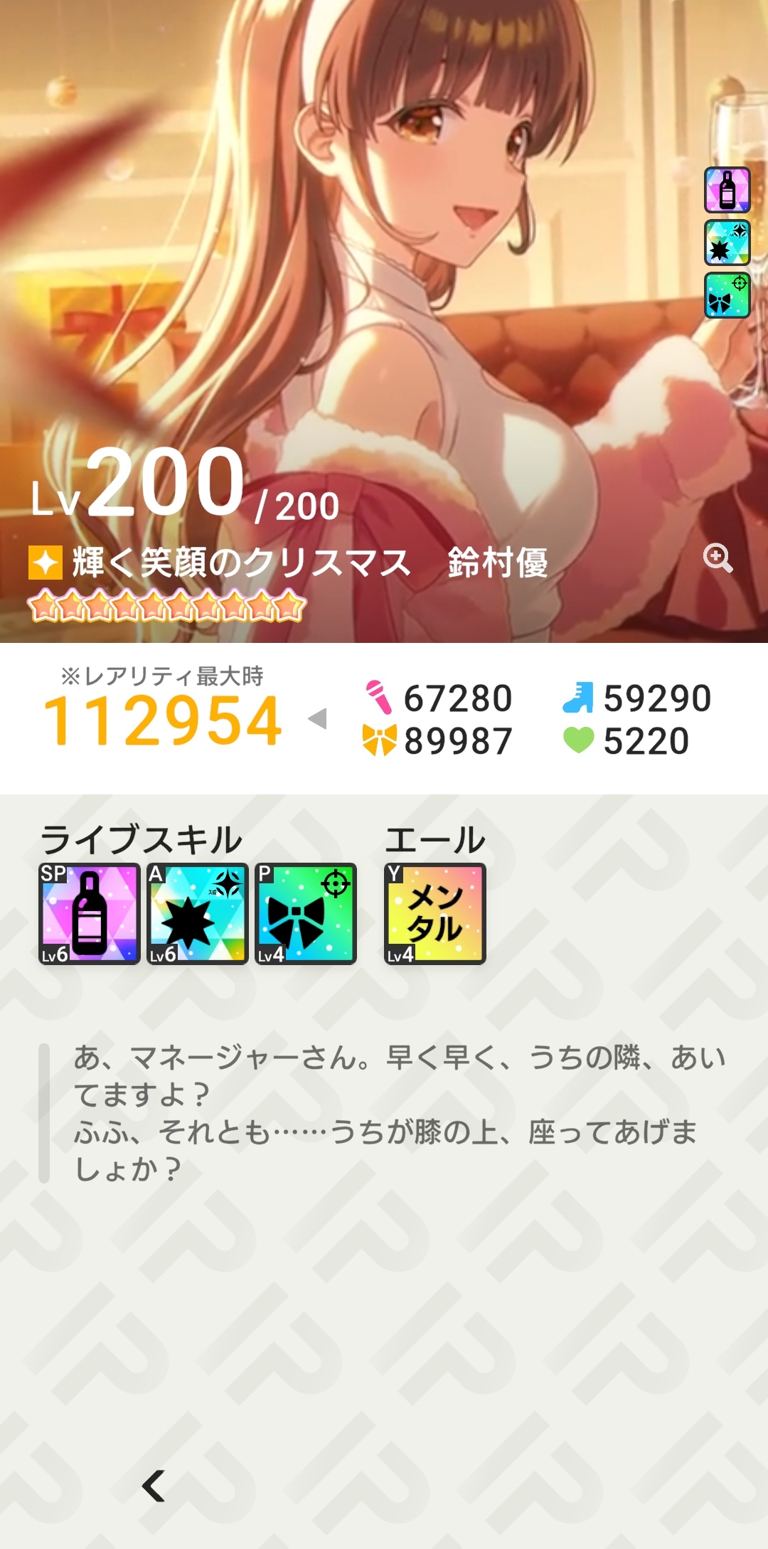 | … | 8425/12/24(水)13:41:21No.1385676787+プレミアムにカードシナリオあったら膝の上に乗ってくれたのに… |