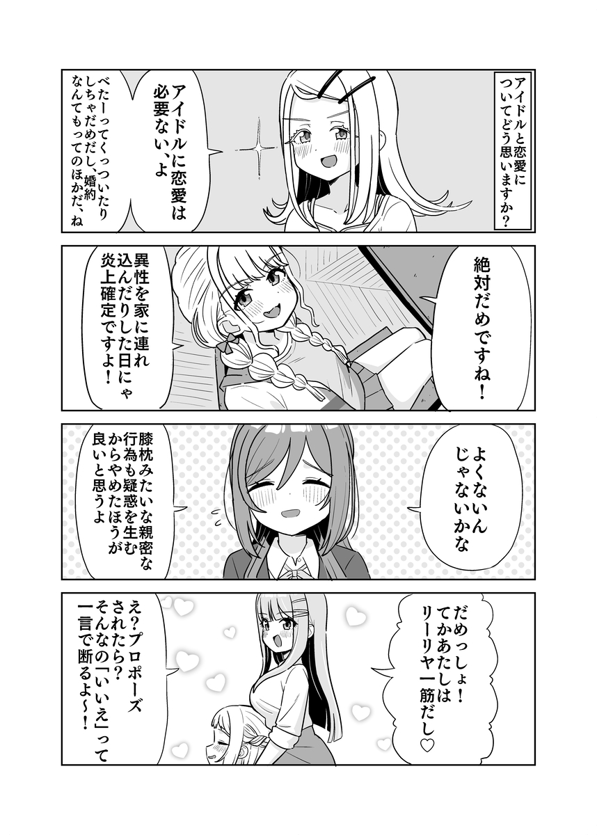 | … | 2825/12/24(水)14:59:27No.1385692659+>アイドルに恋愛は必要ないって言うてたやないですか |
