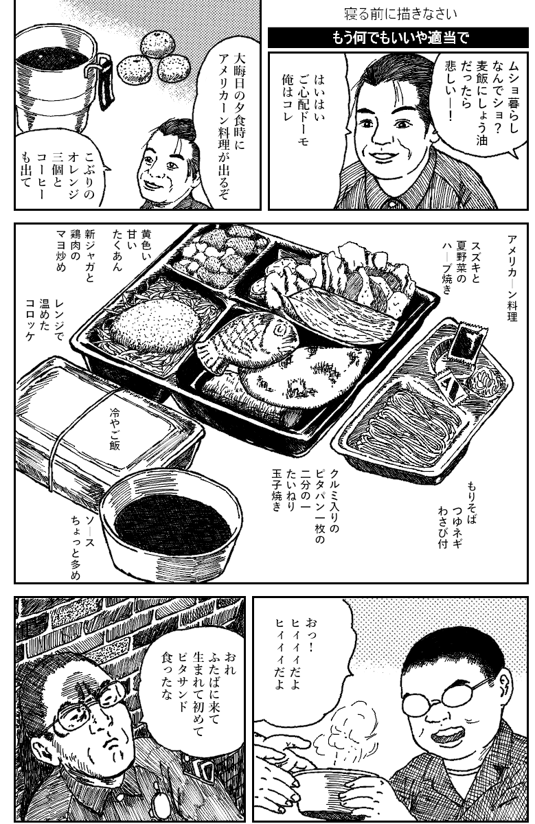 | … | 1925/12/24(水)14:32:11No.1385687208+ピタサンドだけじゃなく冷やご飯に沢庵とコロッケの妖アパグルメも押さえてるのがポイント高い |