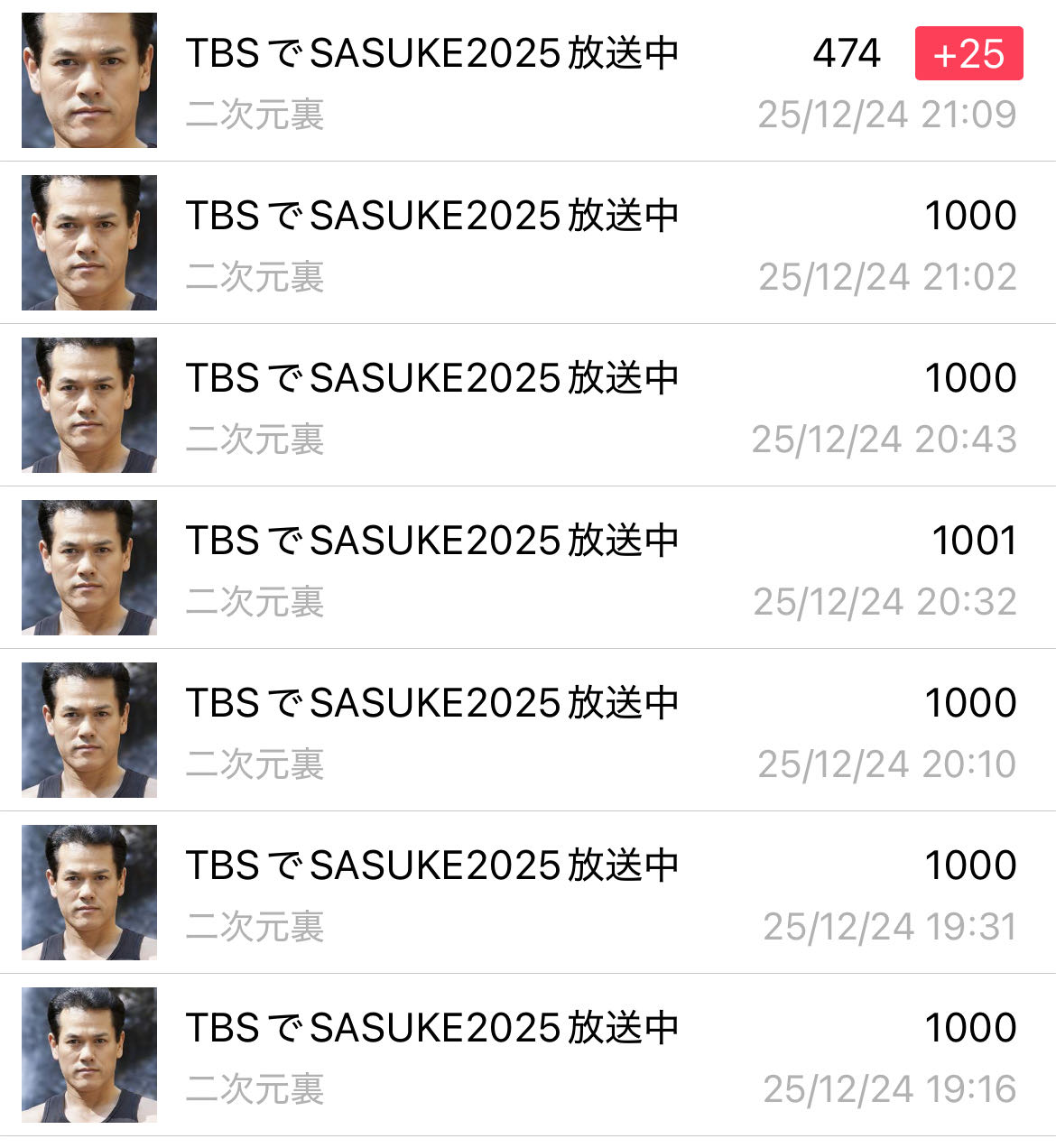 TBSでSASUKE2025放送中上限1000レスに達しました