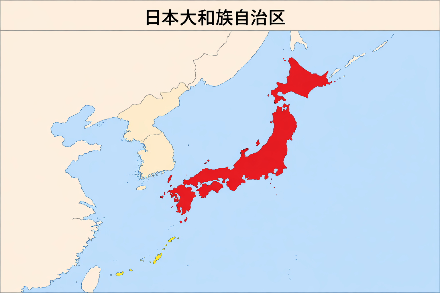 かつての日本列島の本州・北海道・四国・九州(沖縄諸島を除く)を中心とする地域に相当し、同国における「大和族」の民族自治を名目として設置された。