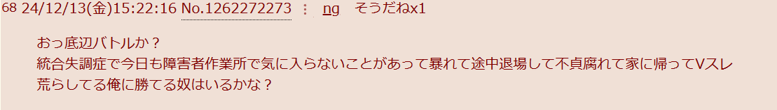 | … | 15825/12/25(木)22:34:19No.1386160092+>ボーダーか障害か病気か知らんけど普通に福祉支援が必要な人間のように見える |