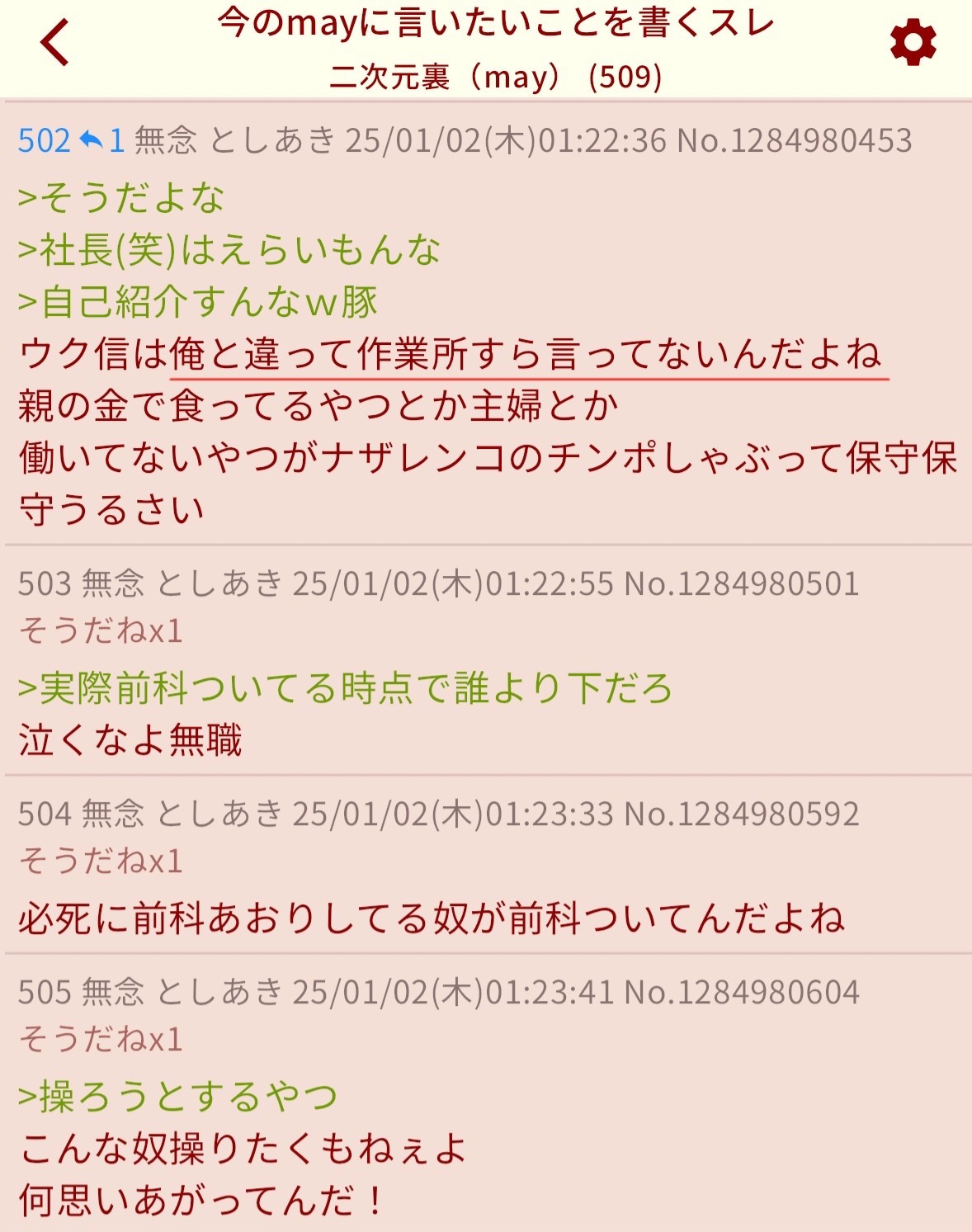 | … | 9625/12/25(木)22:10:12No.1386150726そうだねx2>ここの粘着アホしかいないから… |