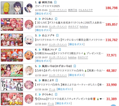 | … | 99925/12/26(金)00:21:14 ID:uYcGwnR.No.1386196761+>バズ回避狙いは去年もやってなかった? |