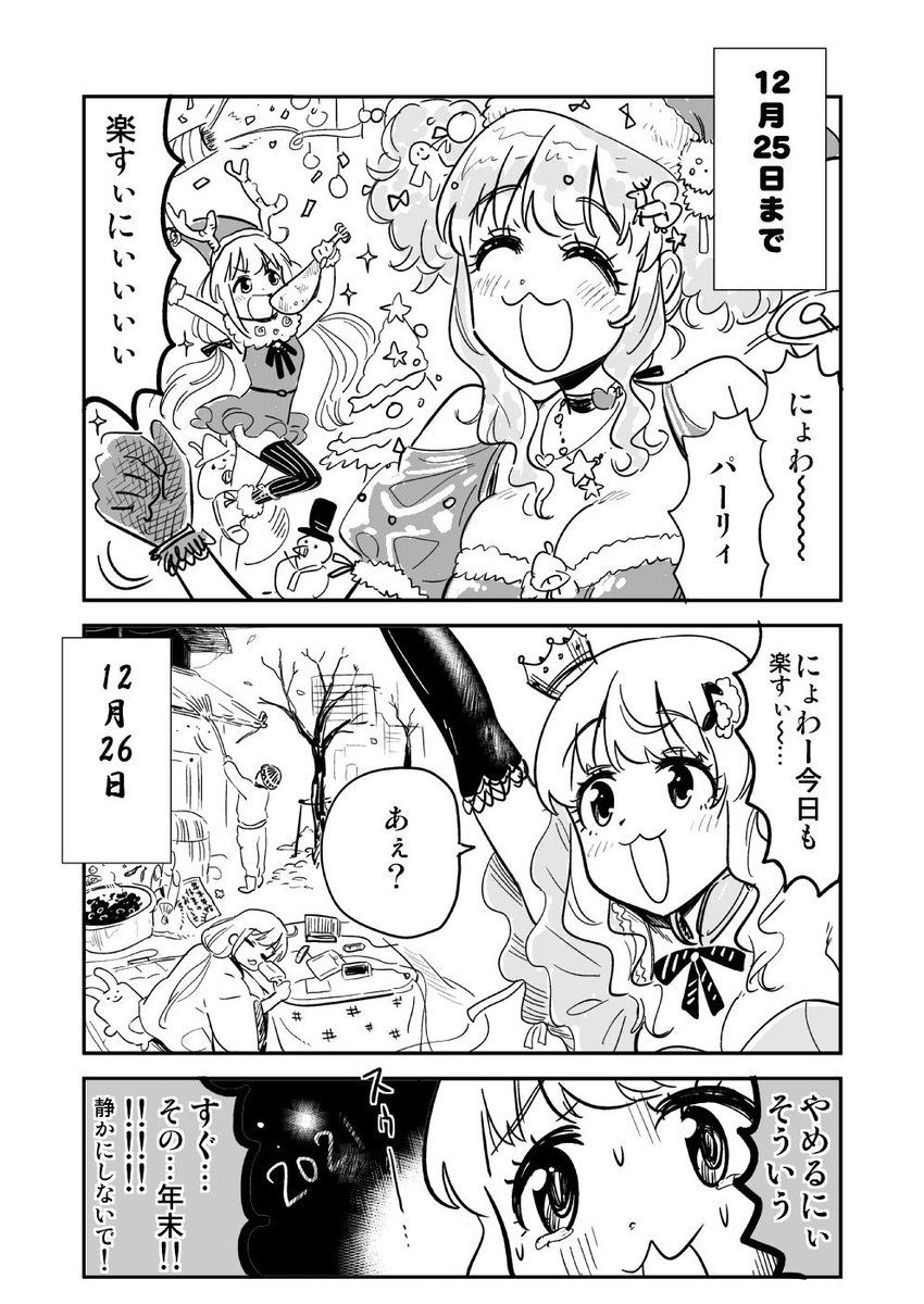 | … | 5725/12/26(金)00:50:21No.1386204427そうだねx1>忘年会数回にクリスマスに大晦日に正月ってイベント過多だよね |