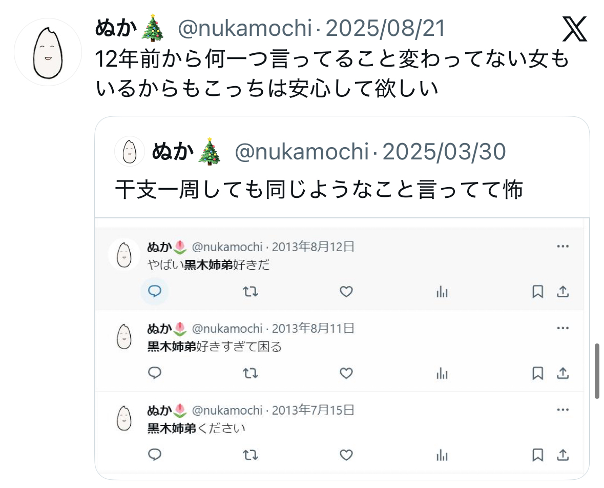 | … | 16425/12/26(金)12:04:22No.1386286799+夏も夏でヤバかったしこのカプ推してる人は大変だな |