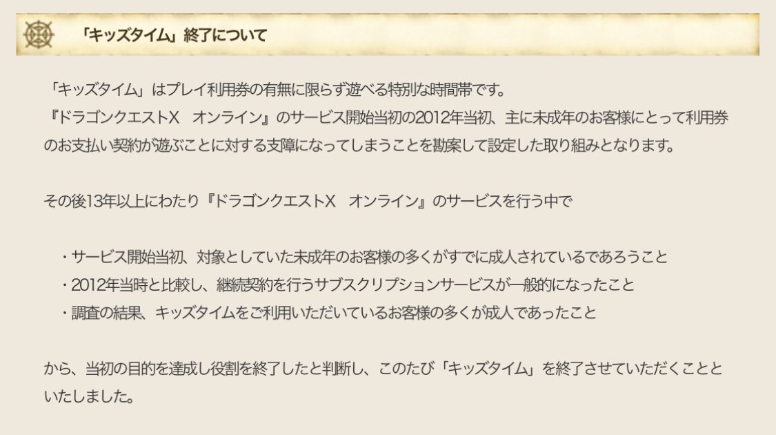ドラクエ10キッズタイムが成人タイムになってたので終了!このスレは古いので、もうすぐ消えます。