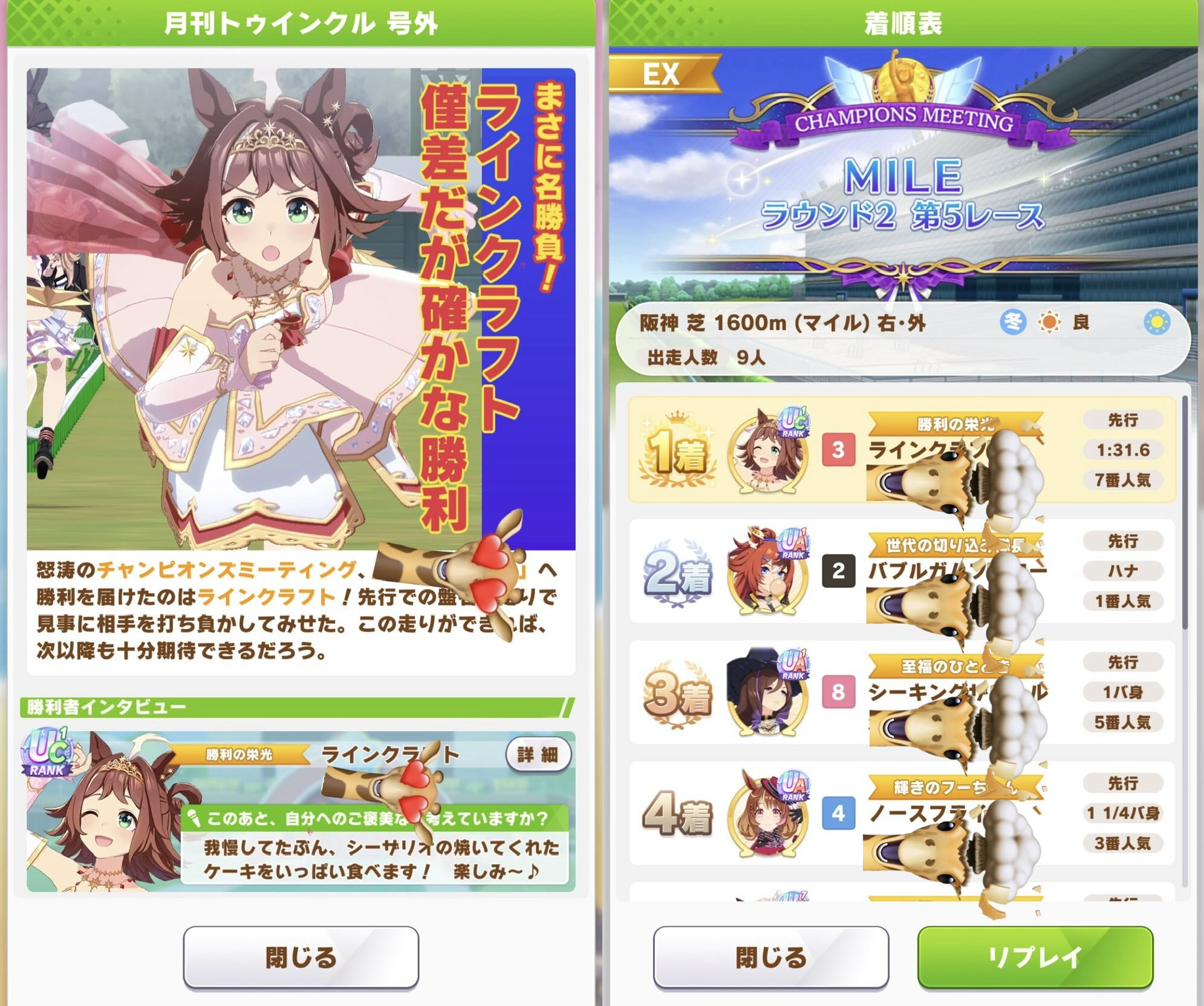 | … | 4125/12/26(金)13:33:56No.1386309870そうだねx1B決だろうと勝ちは勝ちなのだ!愛バのムービー流れれば精神衛生が保たられるのだ!! |