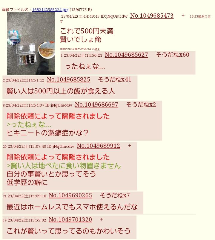 | … | 1625/12/26(金)19:07:20No.1386384775そうだねx1女のDMにチンコ晒しに行ってブロックされた出会い厨じゃん |