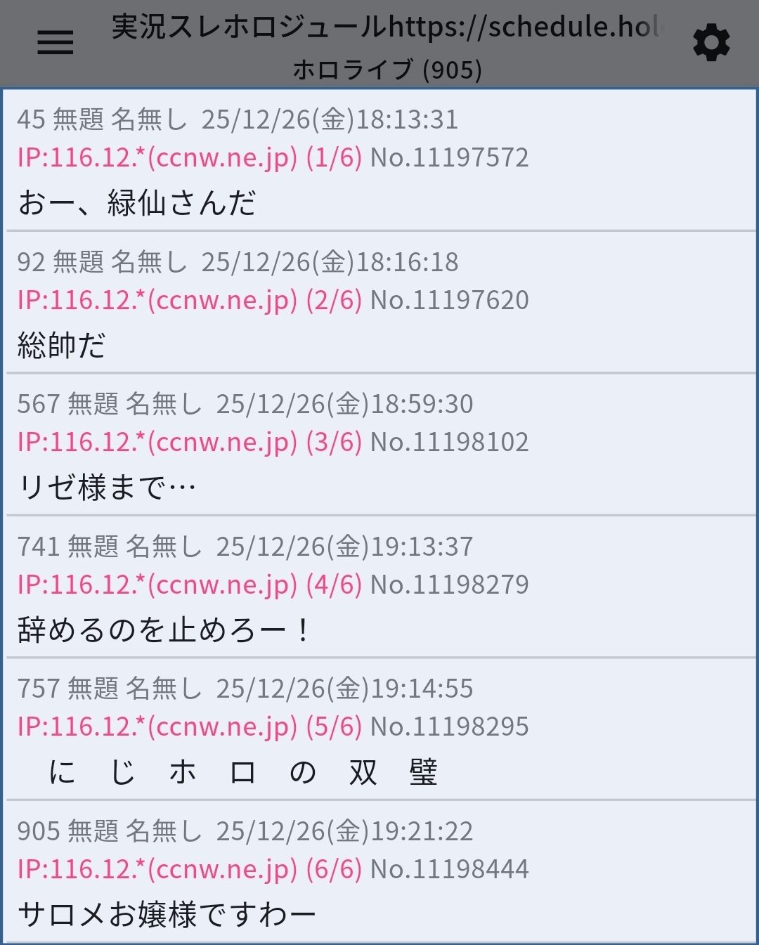 | … | 50425/12/26(金)20:32:27 ID:cgViymKwNo.1386416591そうだねx4>>にじさんじとか言う箱ライバーもリスナーもカスみたいだなマジで |