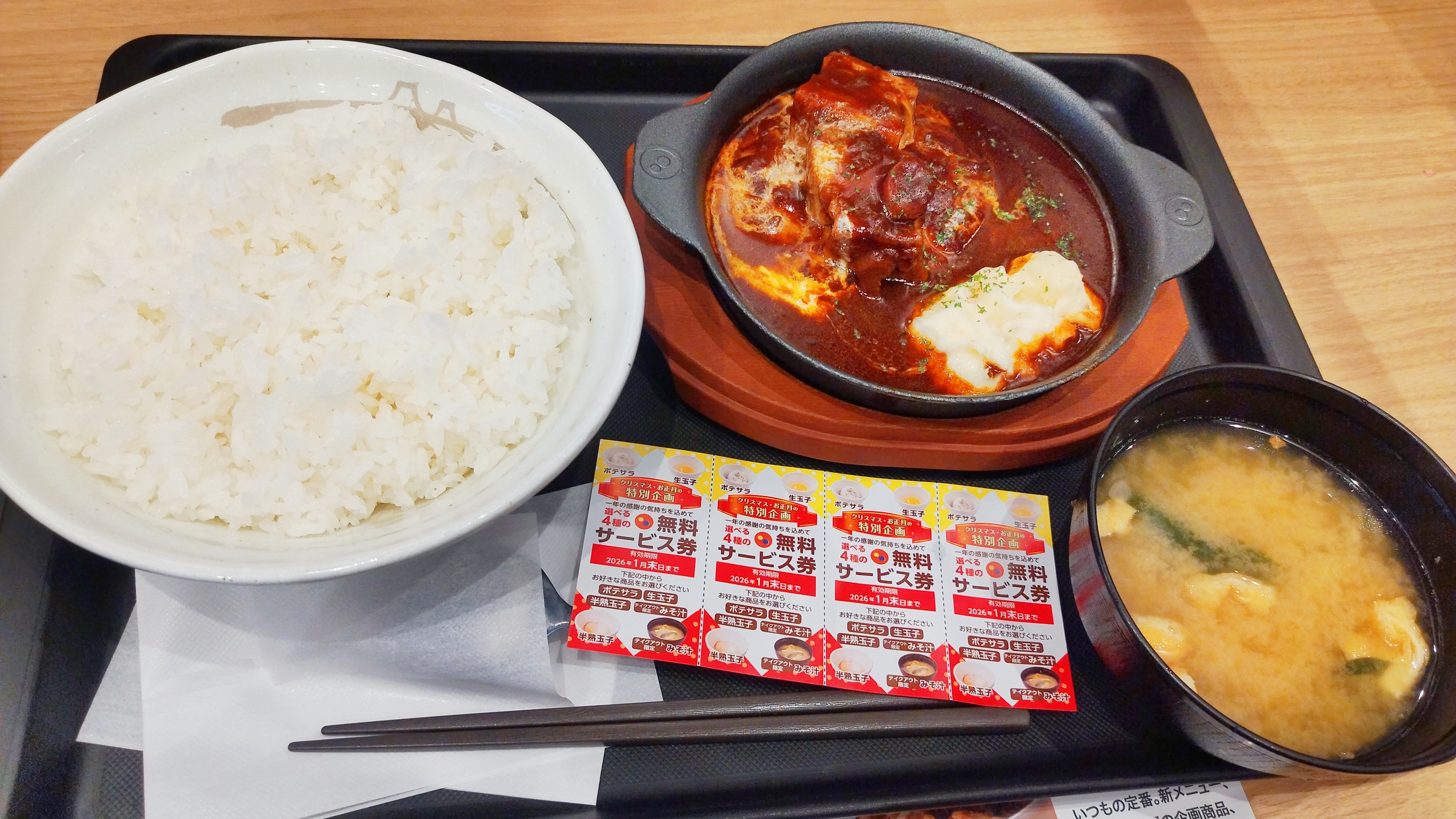 | … | 12025/12/26(金)23:10:21No.1386477196+一回の注文で一味噌汁の権利が付くとかなのか? |