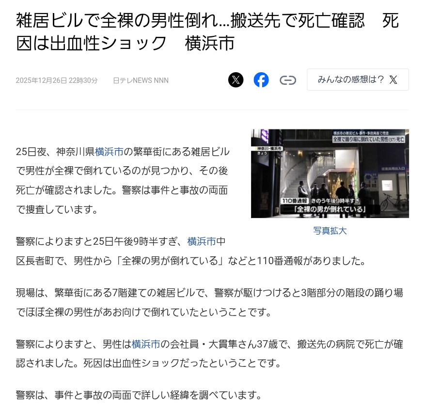 | … | 2925/12/27(土)01:34:02No.1386518141そうだねx2なんか年末に物騒な事件多いな |