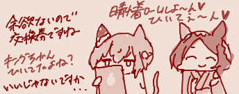 | … | 25325/12/27(土)12:26:33 ID:5lCOdrMENo.1386604660+ネコセイちゃん結構キングちゃん好きですよね |