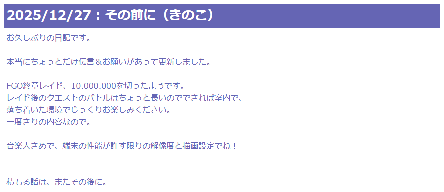 | … | 8225/12/27(土)21:42:37 ID:R1StegdkNo.1386786045+こんや、12じ、 FGOがしぬ |