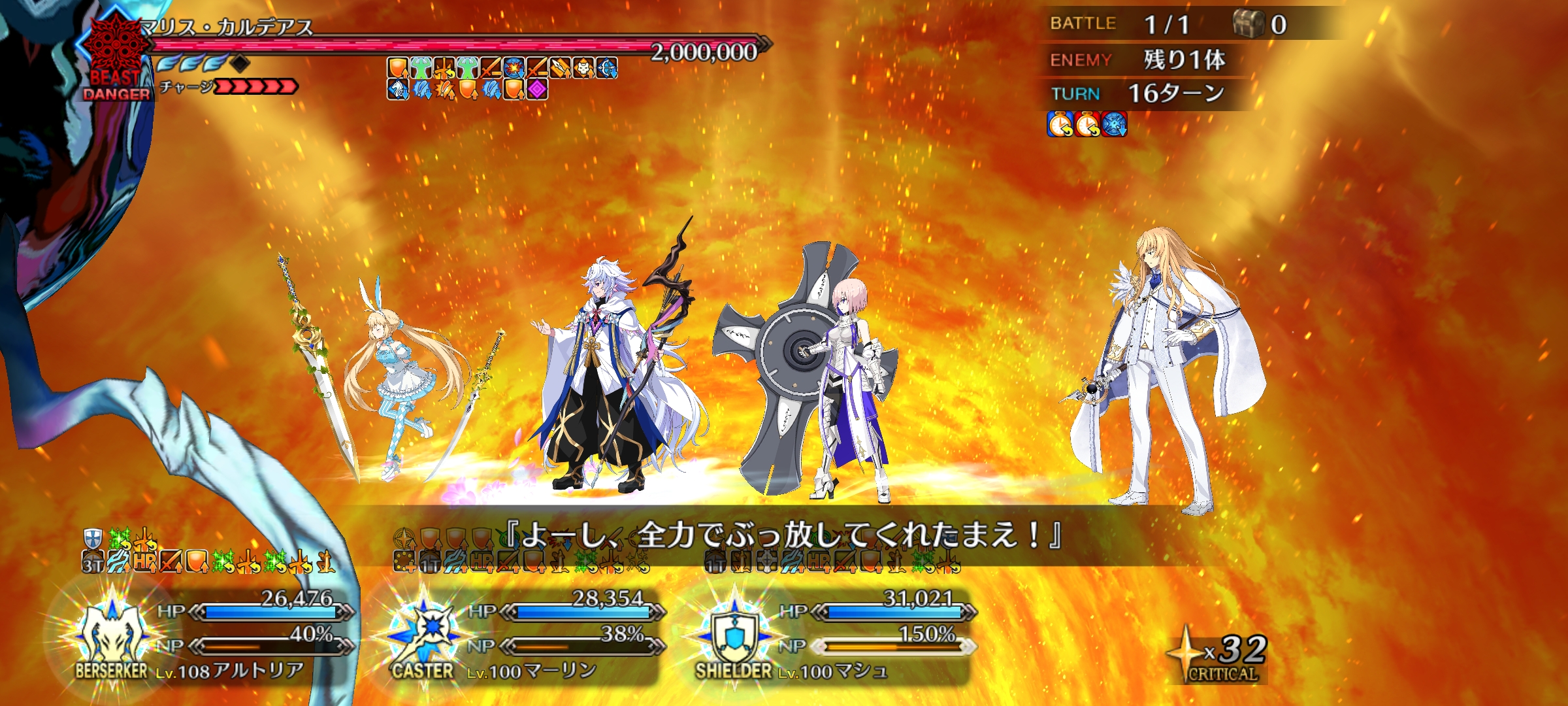 | … | 725/12/28(日)02:46:07No.1386878498そうだねx2キリ様バフのときマシュの聖剣チャージきれたとこだったから |