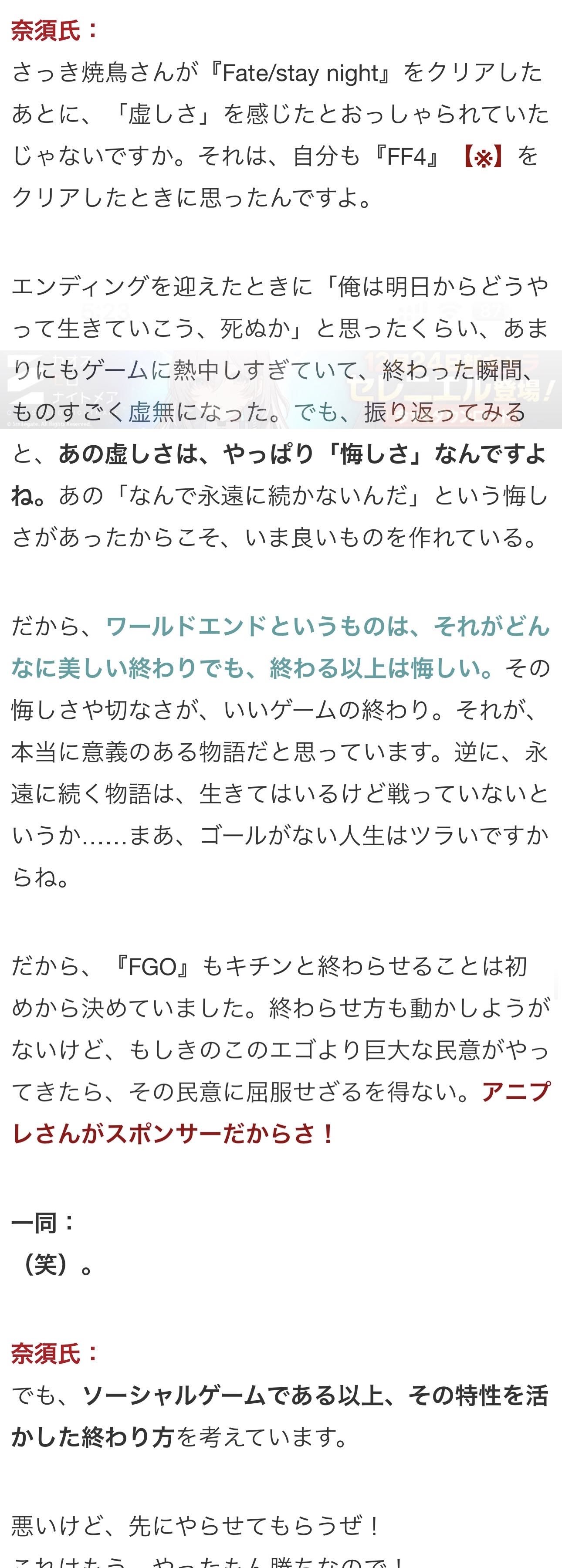 | … | 4925/12/28(日)04:52:08No.1386890371そうだねx5>終章で一番驚いたのは藤丸が喋ったことだった |