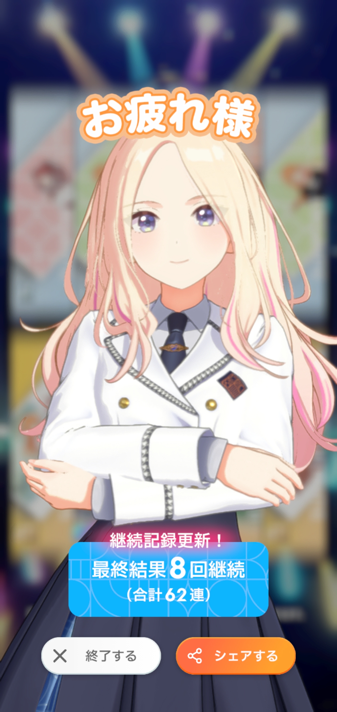 | … | 525/12/28(日)10:45:14No.1386935043そうだねx1レジェ初やってみたら初めてSSS+行きましたわ 通常レッスンにおいてちょちょ咲季お姉さま強すぎませんわ? |