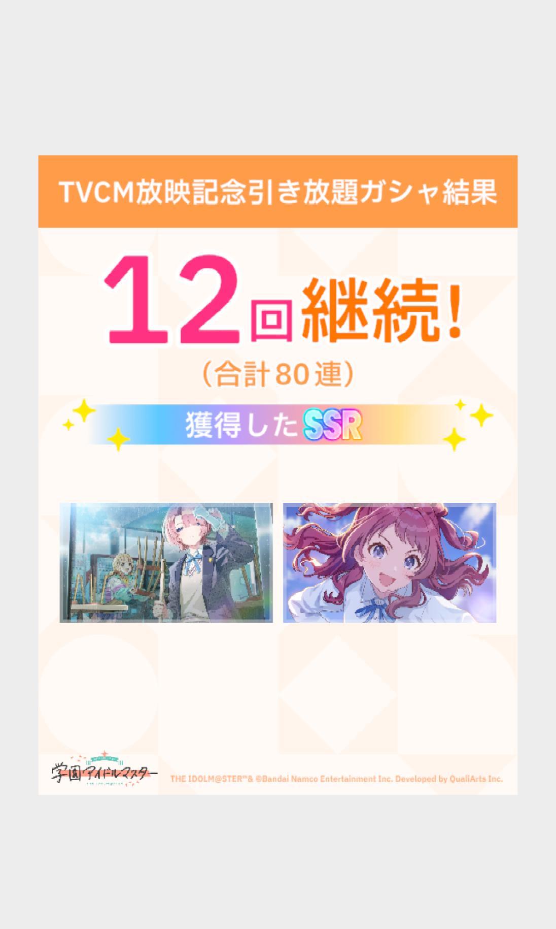 | … | 1125/12/28(日)10:58:55No.1386938372+>2曲目Pアイドルの被りとかだと悲しいですわ 2凸すると強化される方も多いので2枚引くのは割と重要ですわ |