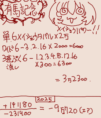 | … | 7025/12/28(日)14:09:10 ID:9QIAB4P.No.1386994326+アニメイトバイオちゃんの仔が有馬を走る |
